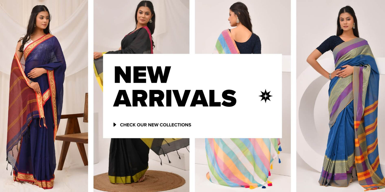 Tangail Cotton Silk Blend Saree in Black + Gold Zari | Queens in Wedding